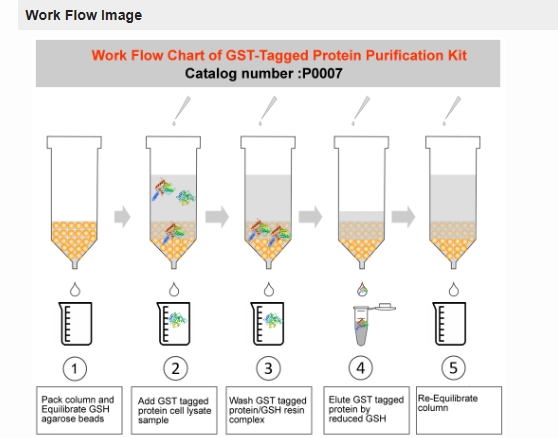 4、本试剂盒是一个Complete All-In-One Kit — 包含全部试剂,高效细菌裂解液、平衡缓冲液、洗涤缓冲液、洗脱缓冲液、洗脱剂、GSH填料、重力空柱(带控流阀)以及下游WB检测所需的高特异性GST小鼠单抗。